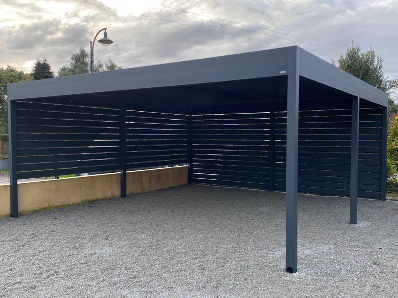 Carport alu 6.98 m x 8.83 m fermé lames alu – 56550 Locoal-Mendon