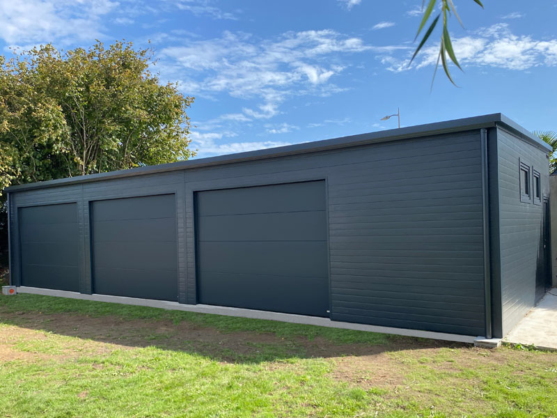 Les garages préfabriqués en panneaux sandwich isolants sur mesure, design et sans entretien avec profils tout en alu pour aménager votre extérieur.